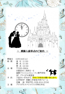 いよいよ12月14日(土) 本校ブライダル実習室において開催♪