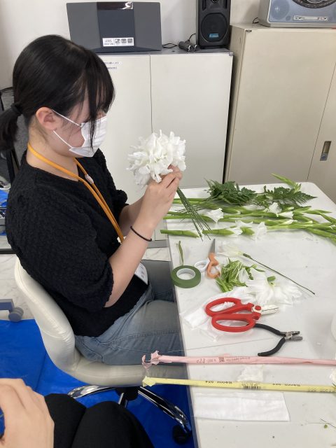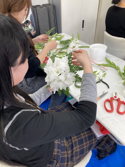今日はみんなが大好き❤フラワー装飾(実習)のご紹介です。