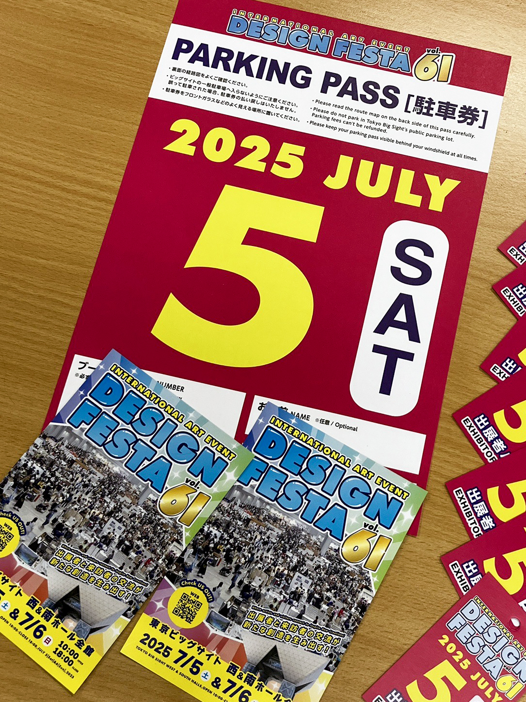 【ファッション学科】デザフェス続報!📢 2025年06月20日 ファッション学科の若色です! デザインフェスタの出展社チケット・駐車券が届きました!! 実感わいてきますね・・・🤩 今回もがんばります!!! 東京ビッグサイト西館で7月5日(土)の出場になります 11:40からです!!!! 応援よろしくお願いします!!!🙏 ファッション学科でした!!