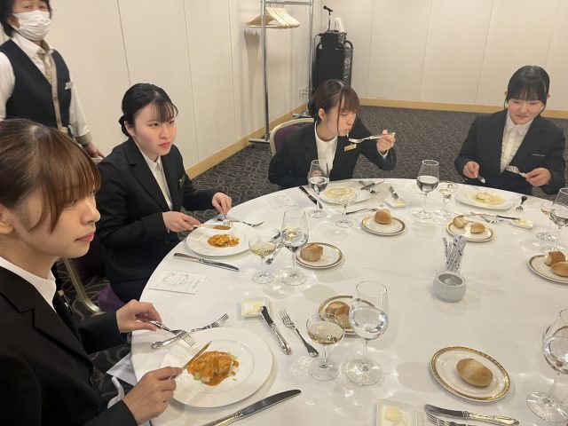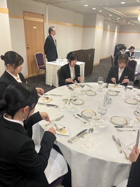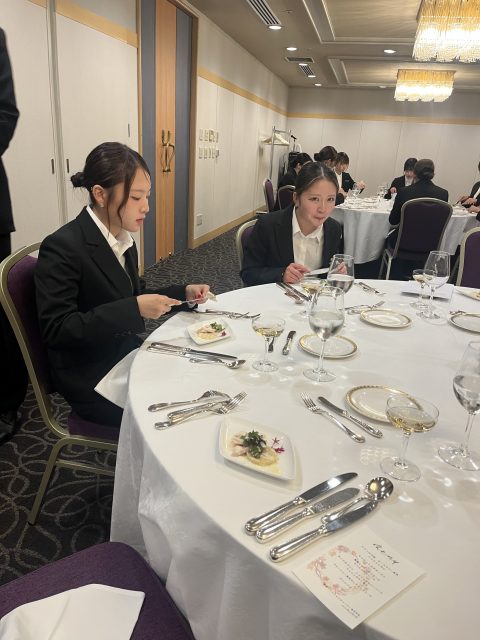 本校では、1年生でフランス料理正餐・2年生で日本料理正餐のテーブルマナーを勉強します。