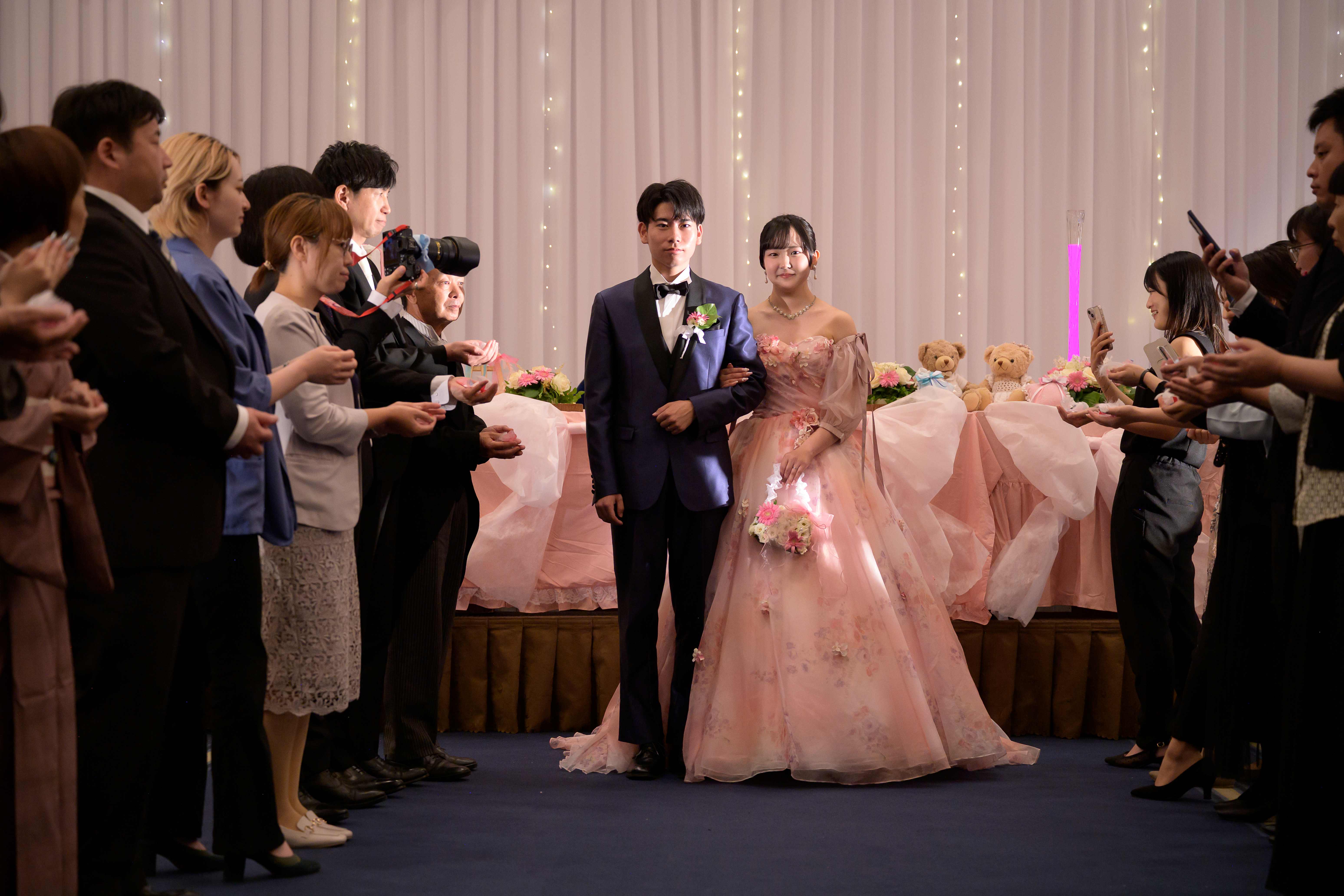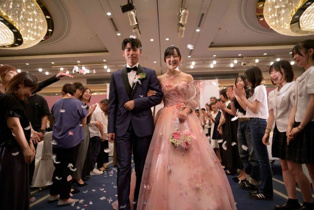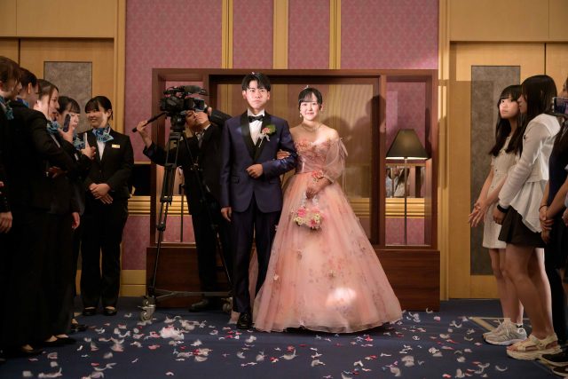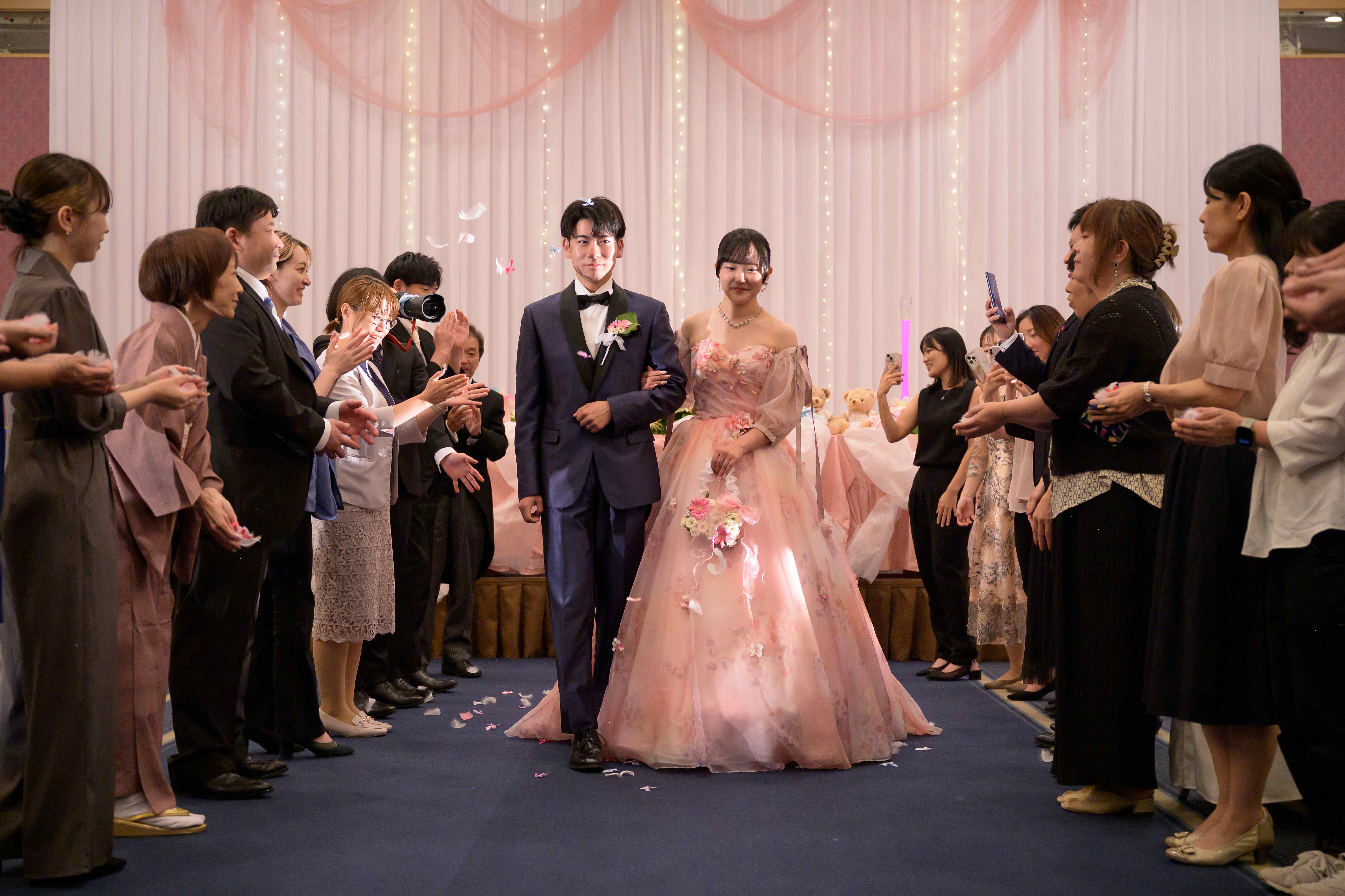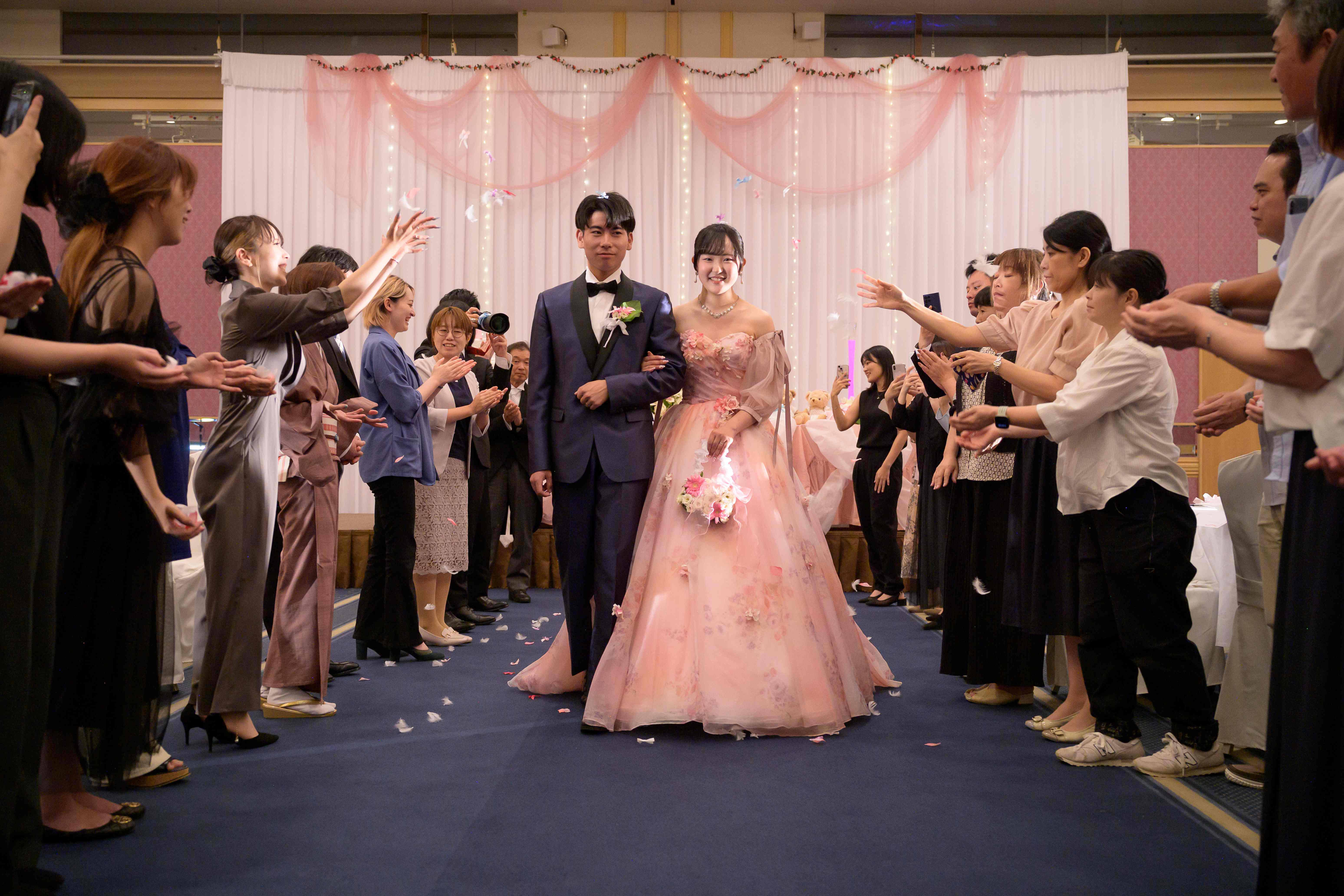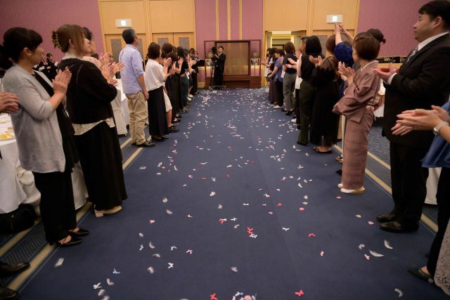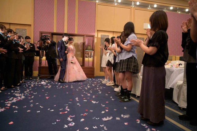 ゲストのみなさんから祝福のリボンシャワーを浴びながら退場です!