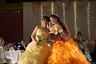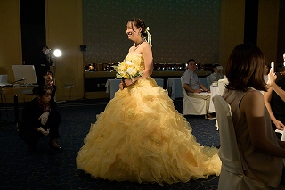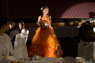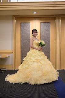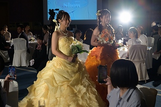 新郎新婦のお色直し中は、ブライダルコーディネイターコース主催のドレスショーを行いました。