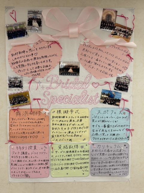 卒業を控えた2年生達がブライダルスペシャリスト学科のおすすめポイントをポスターにしてくれました!! かわいい💕 & 魅力満載です✨