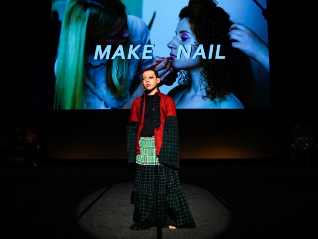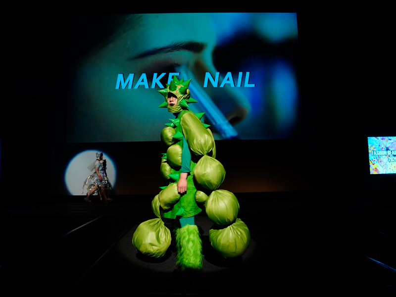 スクリーンに投影されていた映像はファッション学科の志築君が制作したものです👀
