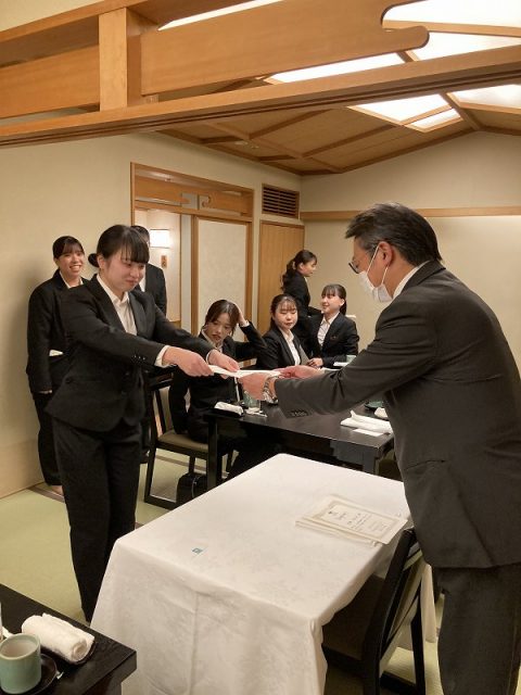 入室 ~ 食事 ~ 退室まで、しっかりマナーを教えて頂きました!!