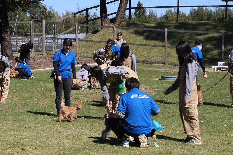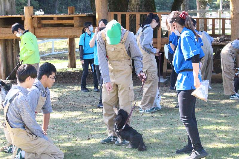 トレーニングを行う前にまずはワンちゃんたちとふれあってもらい、高校生とワンちゃんの緊張をほぐします。