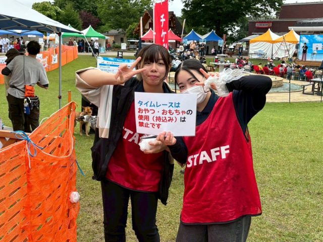 ドッグランの受付やイヌリンピックの受付やコースの設営などを担当しました!!