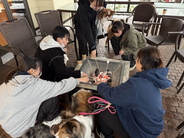 研修の後はみんなで焼きマシュマロ会🔥