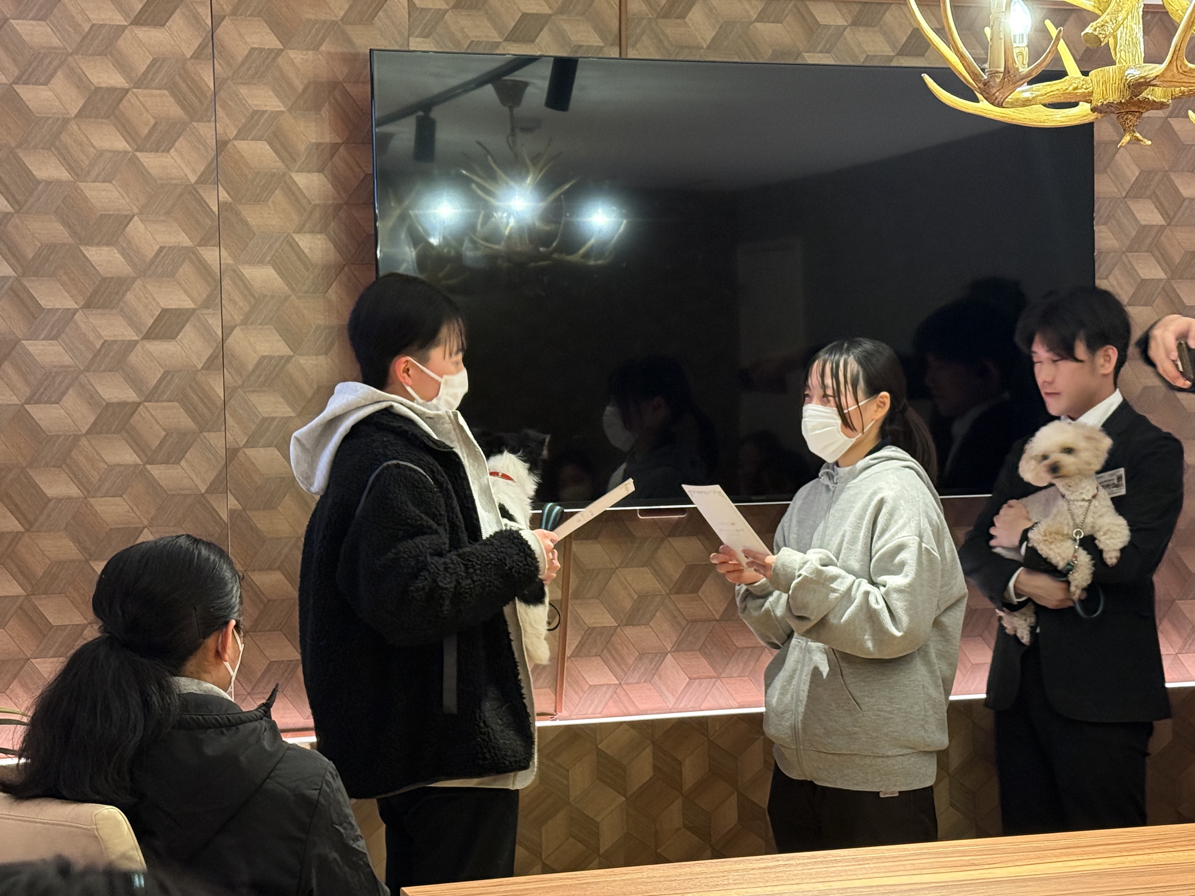 研修ではペットショップ店員・ドッグカフェ店員・ホテルスタッフの職業体験を行いました!!ホテルスタッフさんに直接教えていただきながら、スタッフ役とお客様役を体験し、肌で感じることが出来ました😊