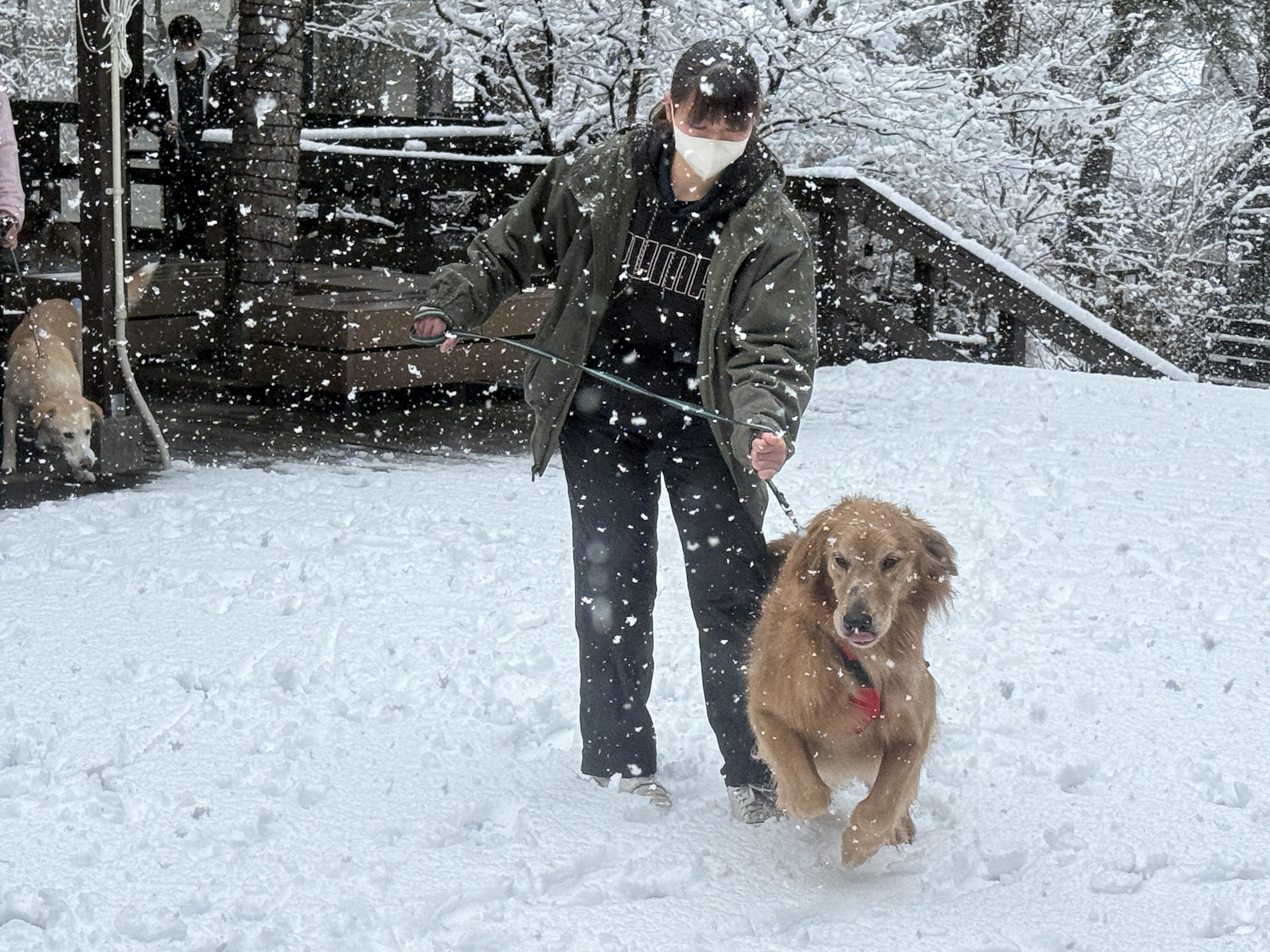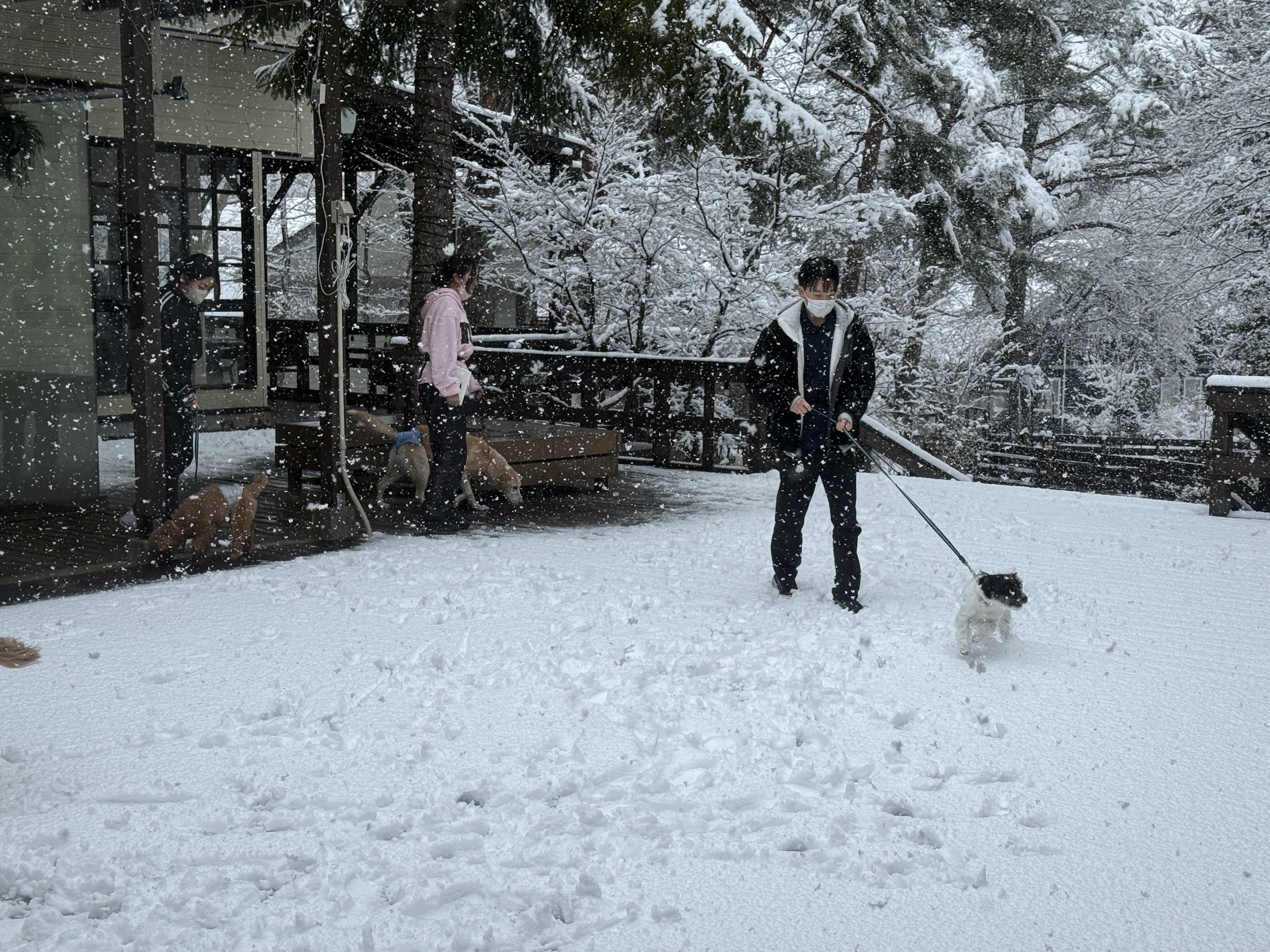 ホテルに到着した時は生憎の天気❄️でしたが、犬達は楽しそうに雪遊び😆